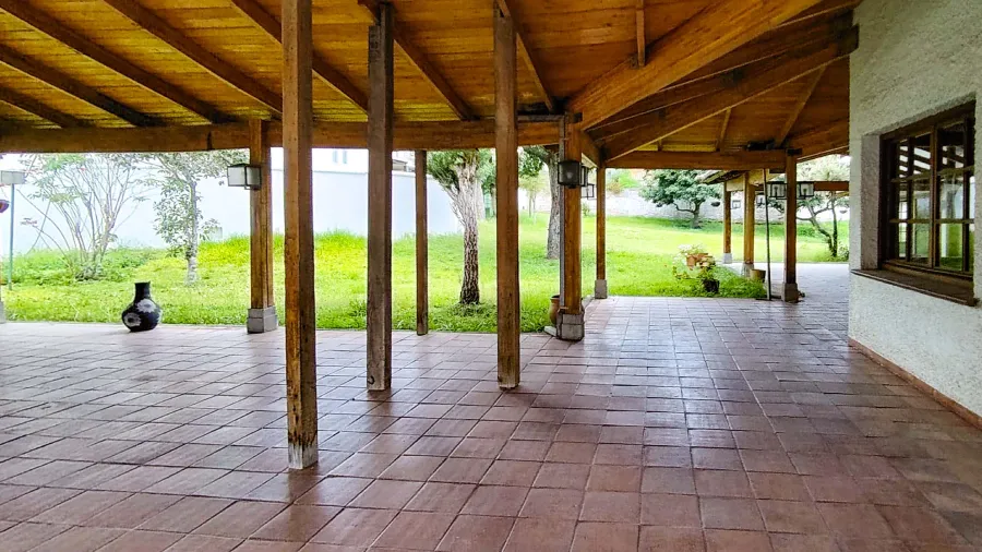La propiedad cuenta con extensos jardines que rodean la casa, generando una sensación de amplitud y conexión con la naturaleza. El portal cubierto y las áreas exteriores ofrecen múltiples posibilidades para diseño paisajístico, ampliaciones o espacios recreativos.